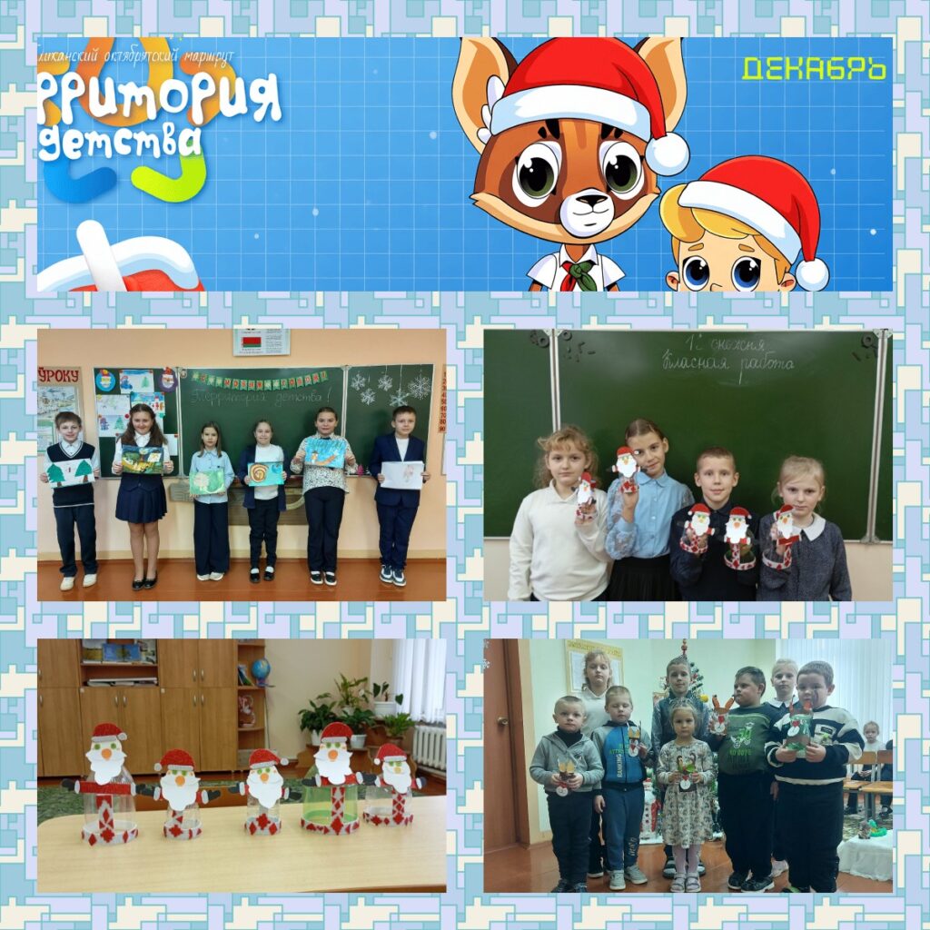 Октябрята пионерской дружины имени Ю. А. Гагарина продолжают участвовать в республиканском октябрятском маршруте «Территория детства:календарь полезных дел». Ребята создали картинную галерею по белорусскому мультфильму «Пилипка»: сделали новогоднюю игрушку на белорусский лад. Яркую поделку с зимними белорусскими мотивами подарили своим друзьям из детского сада.