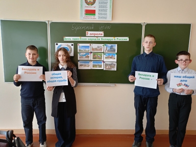 02.04.2026 года ко Дню единения народов Беларуси и России в учреждении образования прошел единый урок «Беларусь и Россия: дружественный диалог». Мероприятие направлено на углубление знаний учащихся об истории Союзного государства, о взаимном сотрудничестве на современном этапе, воспитание патриотизма, духовно-нравственных качеств.