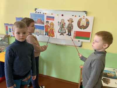 В рамках празднования государственного праздника — День единения народов Беларуси и России с воспитанниками разновозрастной группы интегрированного воспитания и обучения проведена игровая программа « Мы вместе !». Ребята слушали белорусские и русские народные сказки, с удовольствием играли в белорусскую игру «Грушка» и русскую народную игру « Удочка”.